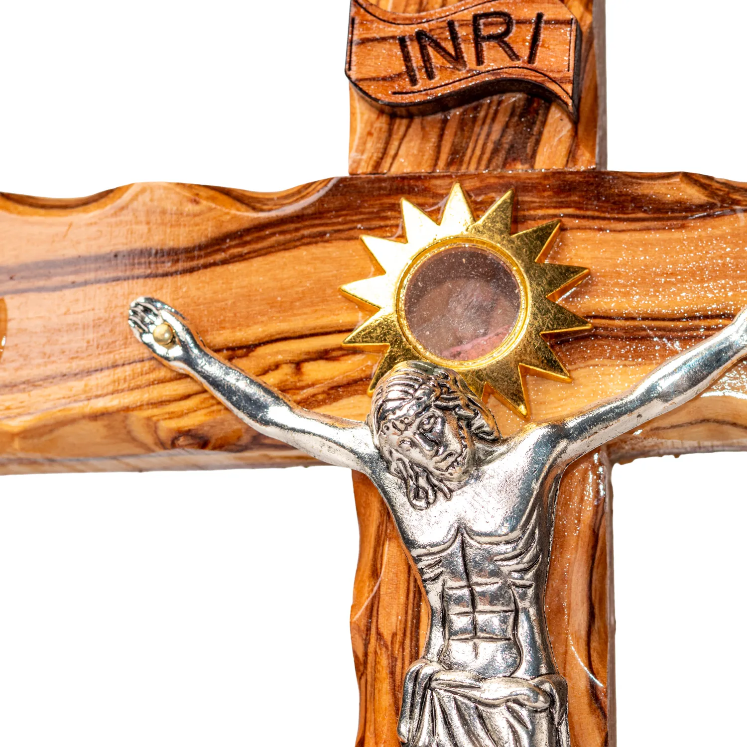 Wyjątkowy krzyż stojący wykonany z drewna oliwnego, pochodzącego z Betlejem. W jego strukturę wkomponowano 5 autentycznych relikwii z Ziemi Świętej: płatek róży, kadzidło, fragment skały, ziemię oraz listki oliwne. Każdy z tych elementów symbolizuje obecność Chrystusa i duchową więź z miejscem Jego życia, męki i zmartwychwstania.