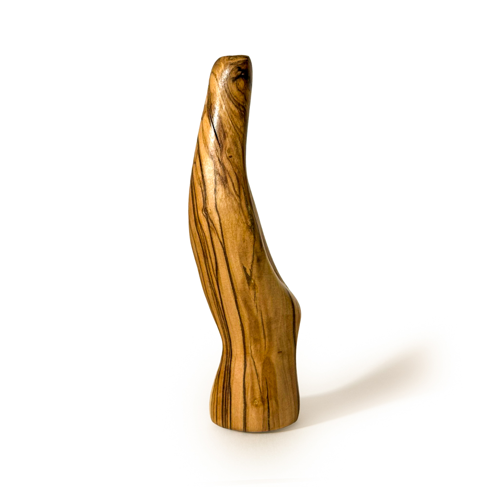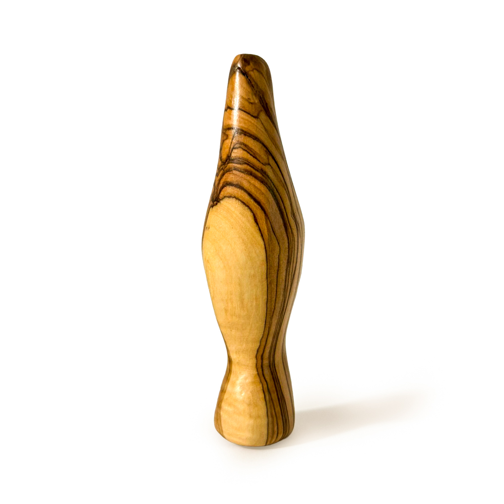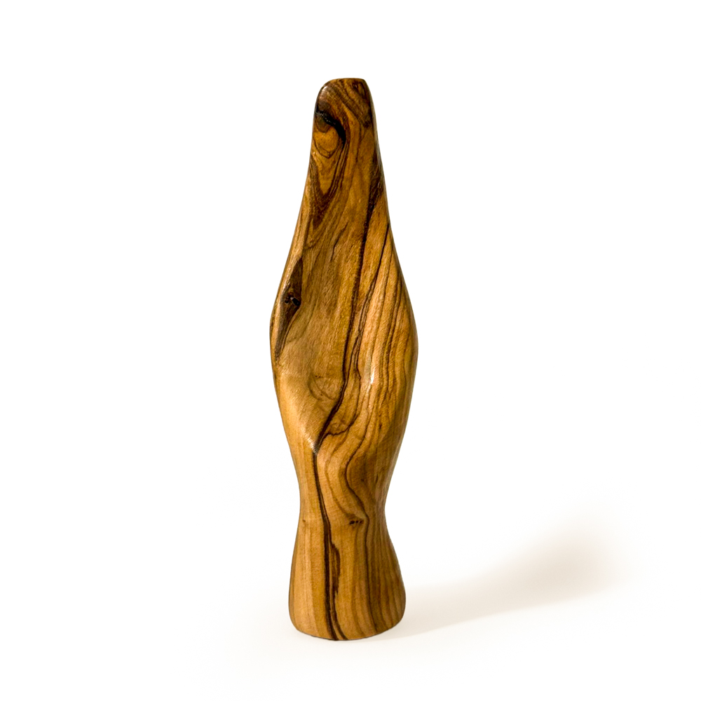 Drewno oliwne, z którego powstała ta figura, charakteryzuje się wyjątkowym usłojeniem, naturalną trwałością i symbolicznym znaczeniem – jest znakiem pokoju, błogosławieństwa i duchowej siły. Każda rzeźba ma niepowtarzalny charakter, co czyni ją unikatową pamiątką z Ziemi Świętej.