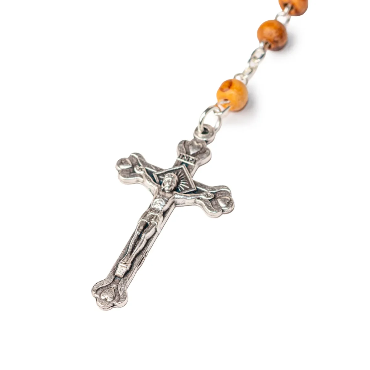 Autentyczny różaniec wykonany z paciorków drzewa oliwnego, które rośnie na terenach Ziemi Świętej. Dzięki łańcuszkowi i rozpinanemu medalikowi jest wygodny w codziennym użytkowaniu i przechowywaniu. To przedmiot głębokiej duchowości i zarazem pamiątka prosto z Betlejem.