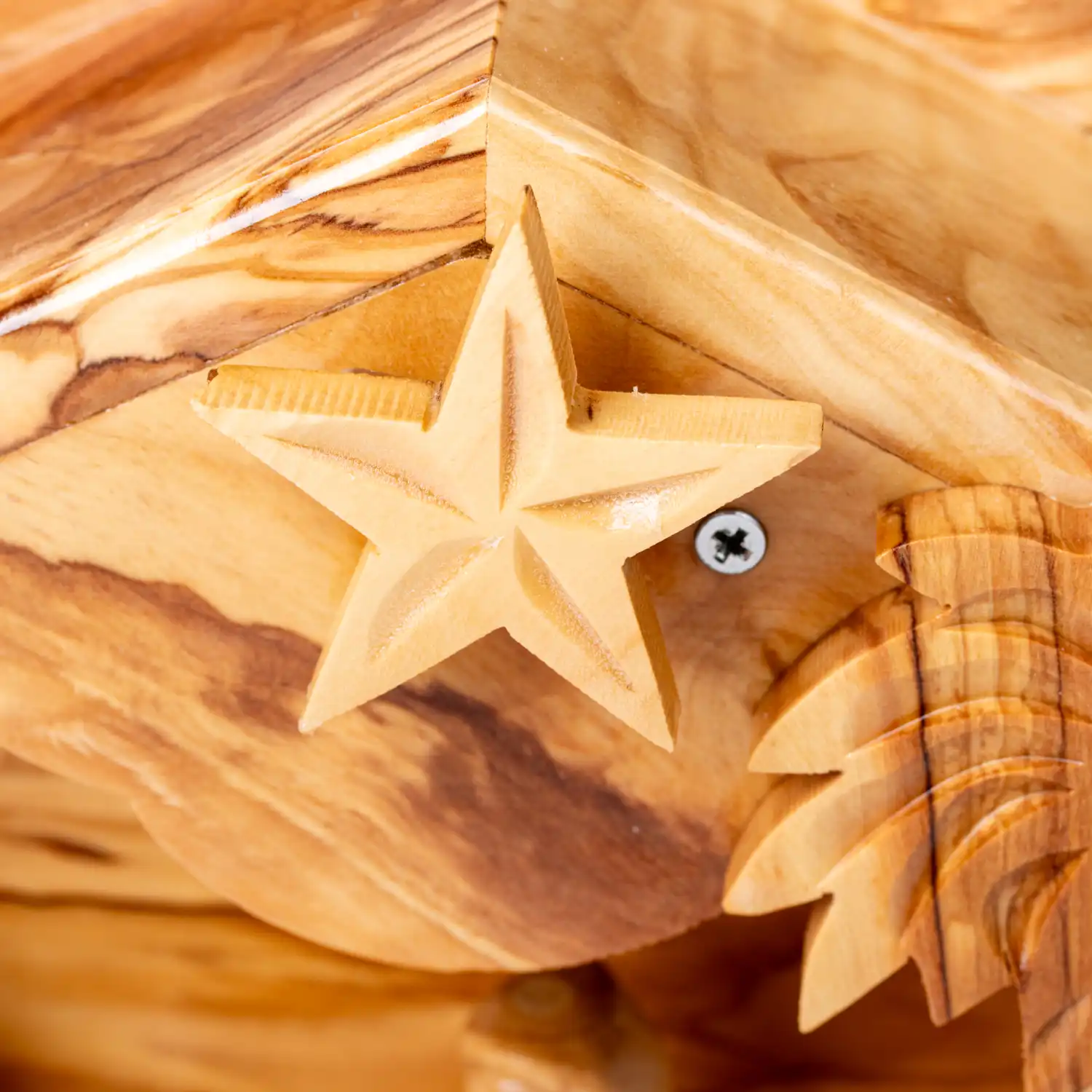 Szopka została wykonana z autentycznego drewna oliwnego pochodzącego z Ziemi Świętej, co nadaje jej szczególnego duchowego znaczenia. Drewno oliwne od wieków kojarzone jest z pokojem i wytrwałością, a naturalne słoje i struktura drewna czynią każdą szopkę jedyną w swoim rodzaju.