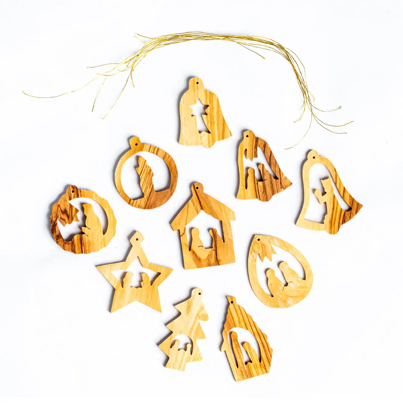 Ten wyjątkowy zestaw ozdób choinkowych to prawdziwe arcydzieła rzemiosła, starannie wykonane ręcznie przez doświadczonych rzemieślników z Betlejem. Każda ozdoba jest wyrzeźbiona z wysokiej jakości drewna oliwnego, które pochodzi z Ziemi Świętej, nadając im ciepły i autentyczny wygląd.