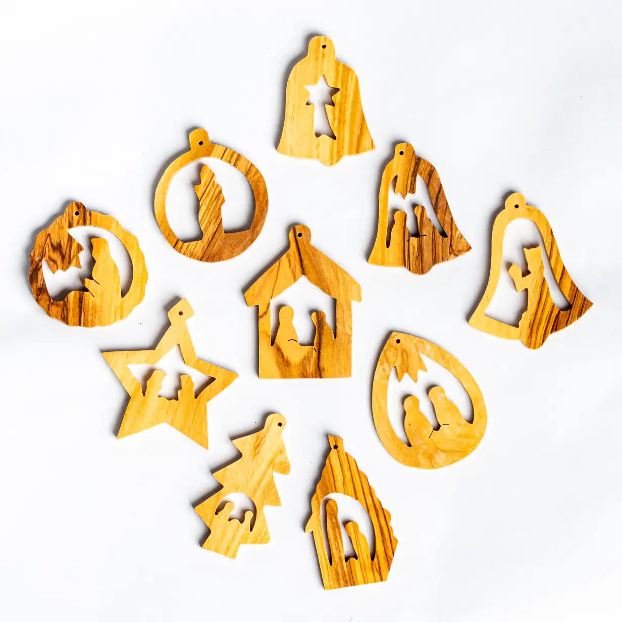 Dzięki przybliżonym wymiarom 5 cm x 5 cm, ozdoby są idealnym dodatkiem do każdej choinki, niezależnie od jej wielkości. Drewno oliwne nie tylko dodaje ozdobom naturalnego blasku, ale także przynosi ducha Ziemi Świętej do Twojego domu.